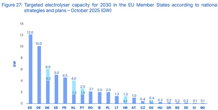 Európska komisia v stratégii REPowerEU v roku 2022 stanovila cieľ vyrábať do roku 2030 až 10 miliónov ton zeleného vodíka a dovážať ďalších 10 miliónov ton. Inštalované kapacity elektrolyzérov majú dovtedy stúpnuť až na 40 GW.
