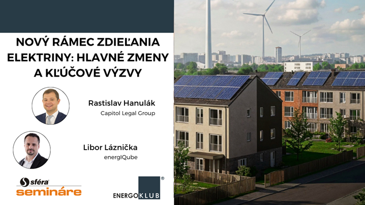 Zdieľanie elektriny vstupuje vďaka legislatívnym novinkám do ďalšej fázy. Nový režim zásadne mení pravidlá hry – od obchodných modelov cez zmluvné nastavenie až po regulačné povinnosti účastníkov trhu. Seminár ponúkne ucelený a prakticky orientovaný pohľad na zmeny účinné od roku 2026, a to formou kombinácie právneho výkladu, analýzy a skúseností z reálneho projektu. Podujatie organizujú semináre sféra v spolupráci s platformou ENERGOKLUB®.